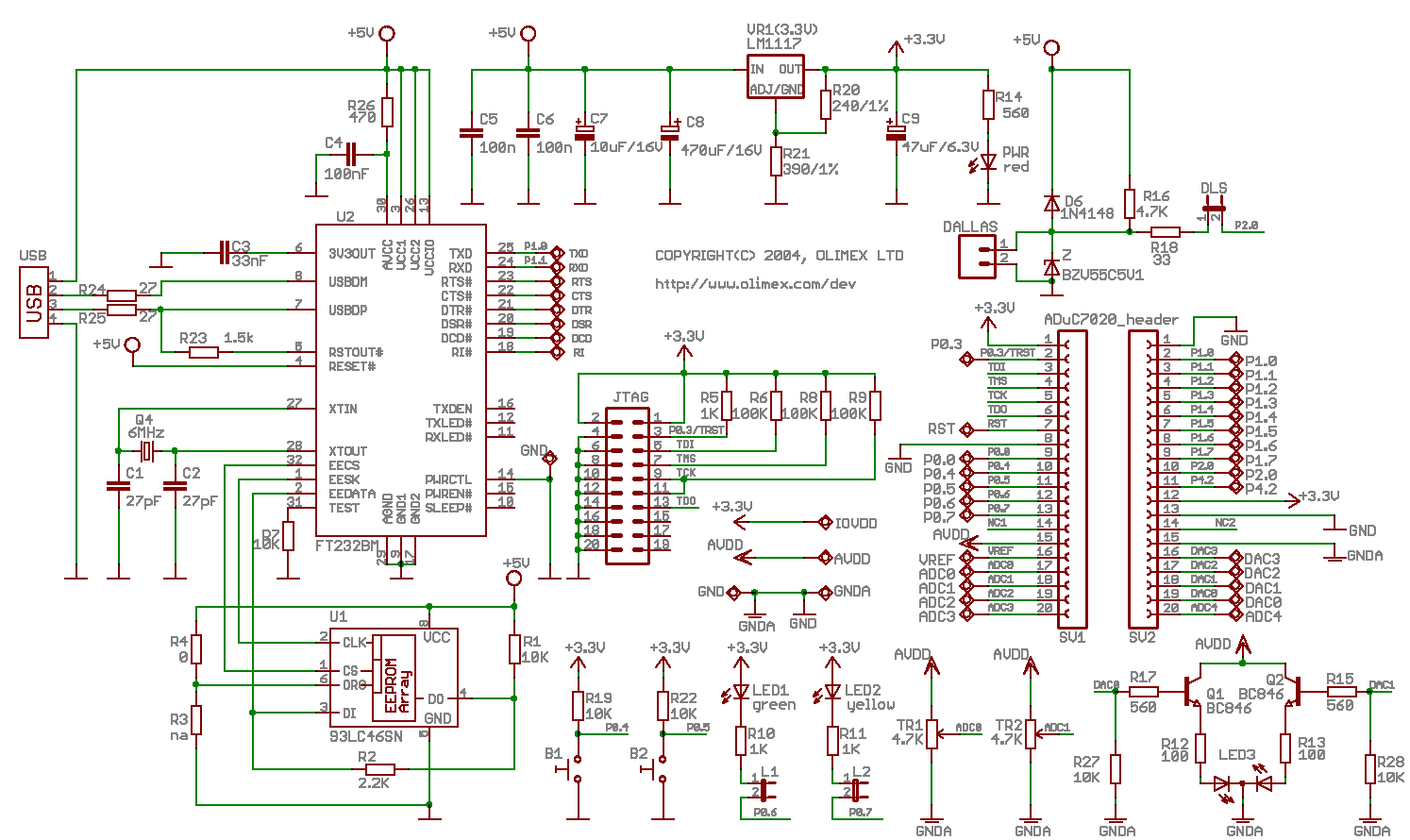 - JTAG connector for in-circuit programming and debugging with ARM-JTAG