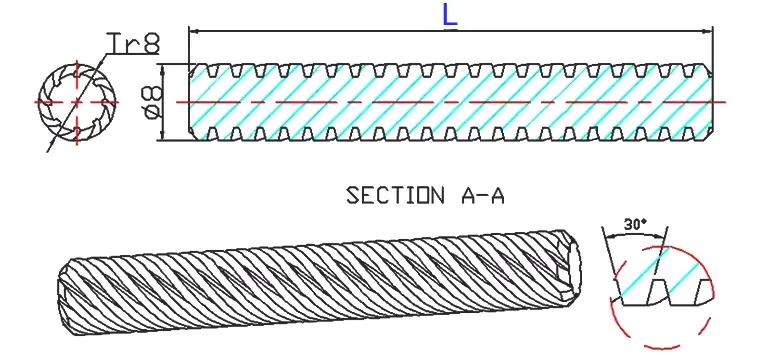 - Thread step - 2mm, thread lead - 8mm per revolution