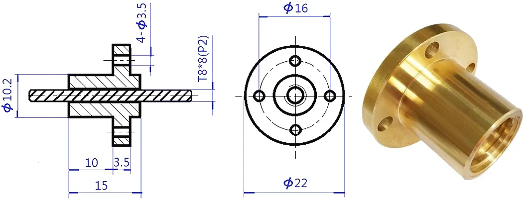 - Brass nut with 4 mount holes